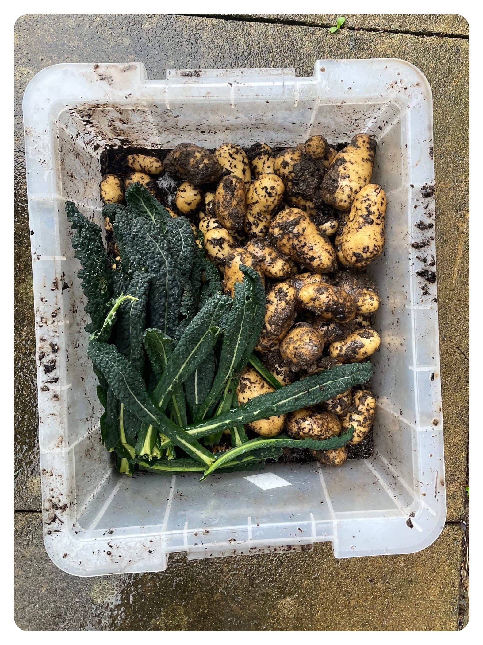 I didn't just watch the helpers! I did a little digging, and while pond installation was going on I started harvesting the last of the potatoes. There was no sign that any had started to think about growing, but I was starting to loos a few to the bugs and beasties in the ground. Not many though. I have decided that if I do spuds again I will do more Pentland Javelins, they have done well in the ground and grown some really nice sized potatoes that are pretty versatile.
