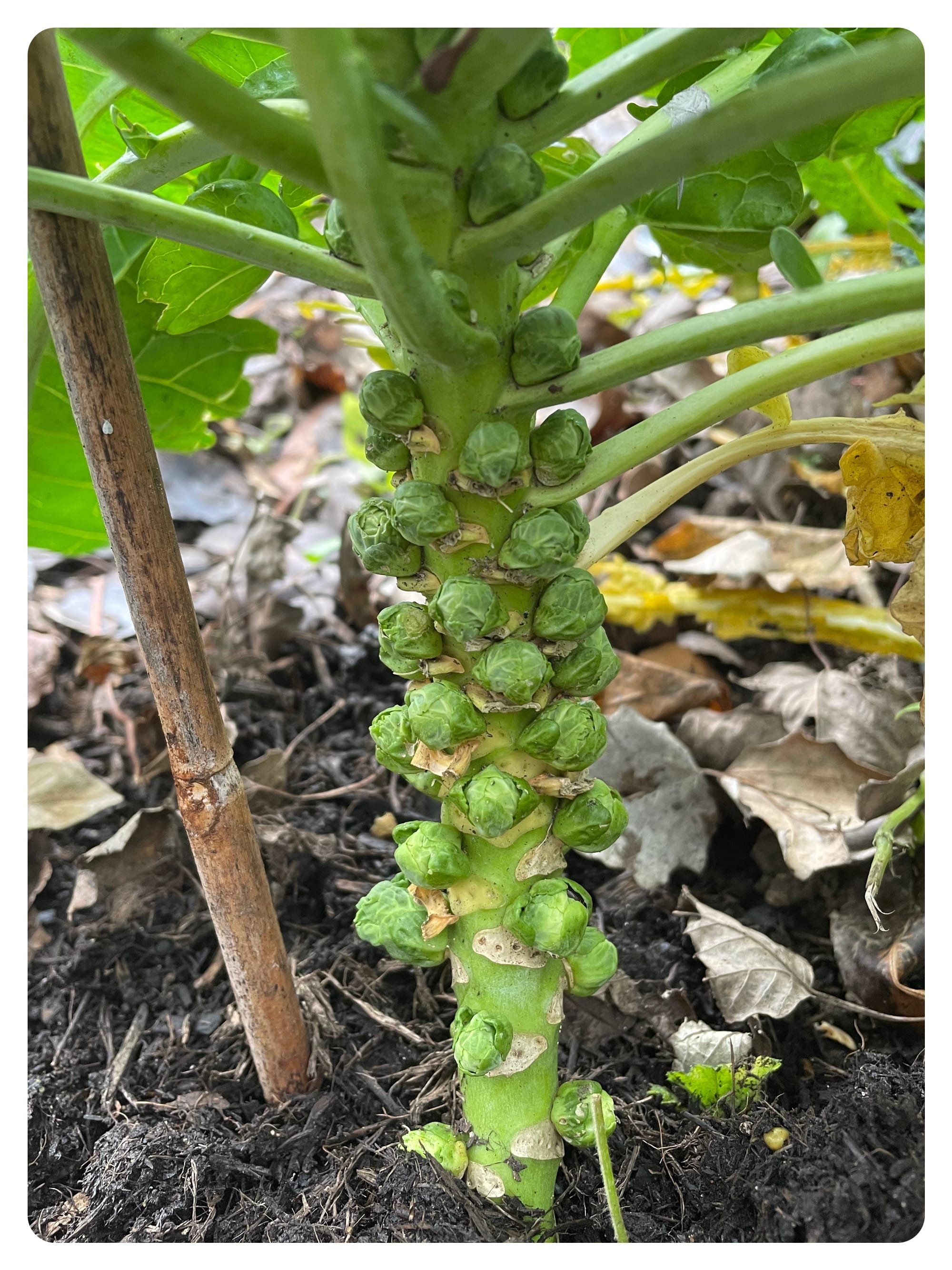 Brussels Sprouts from the allotment did not make it to the Christmas dinner plate. The picture below looks like a lovely stalk of sprouts... but they are actually about pea sized in the image - when I checked them today some are showing potential for February.