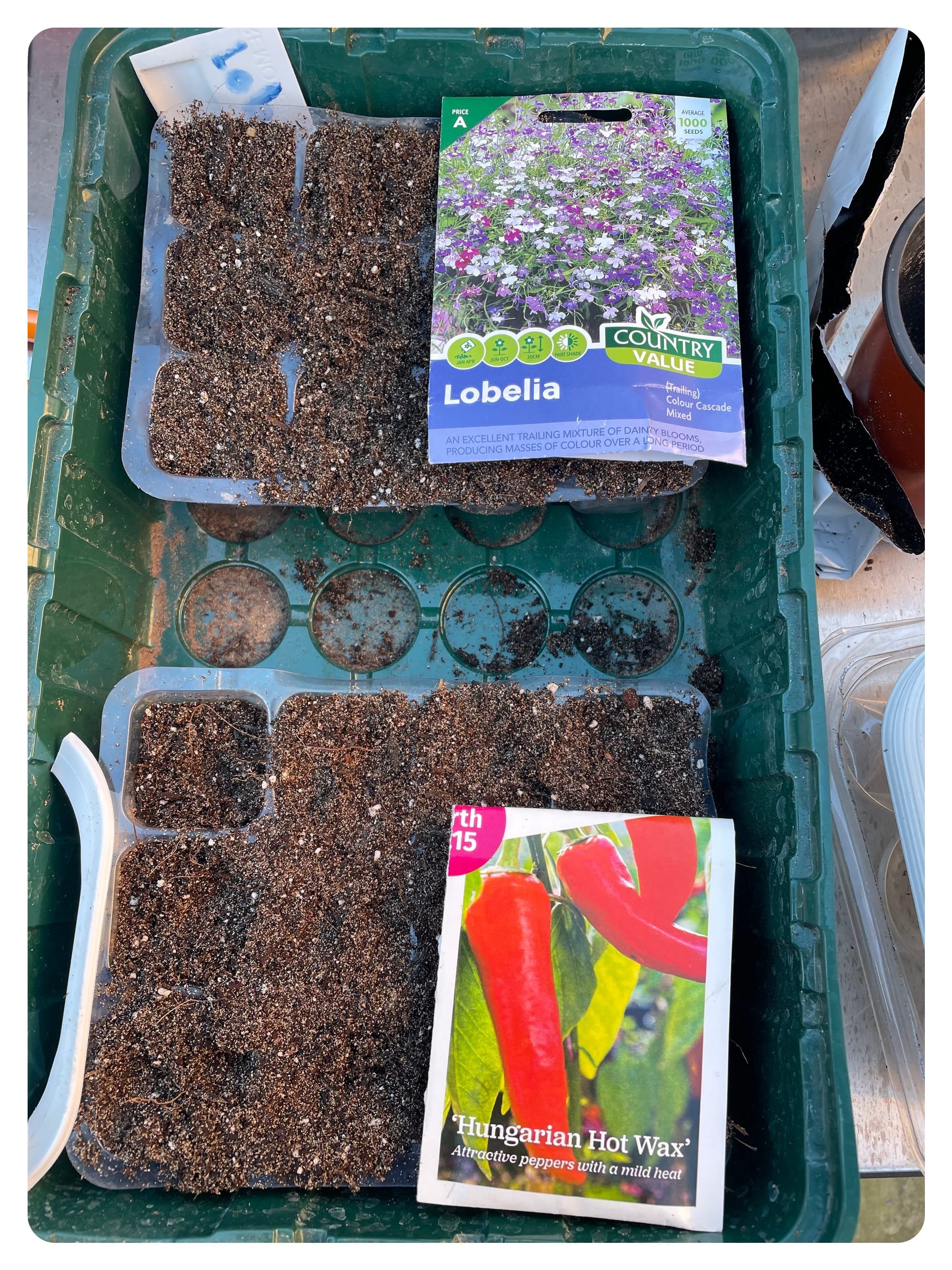 I have already started some seeds off, predominantly flowers, because I plan to use one of the raised beds as a pollinator patch this year, and some chillies because they like a nice head start. I have got seed trays dotted about all over the place - the sunny office window (the warmest spot), the kitchen window (a mid-heat sunny spot) and out int he cold frame thing for stuff that will start out very slow in the cold.