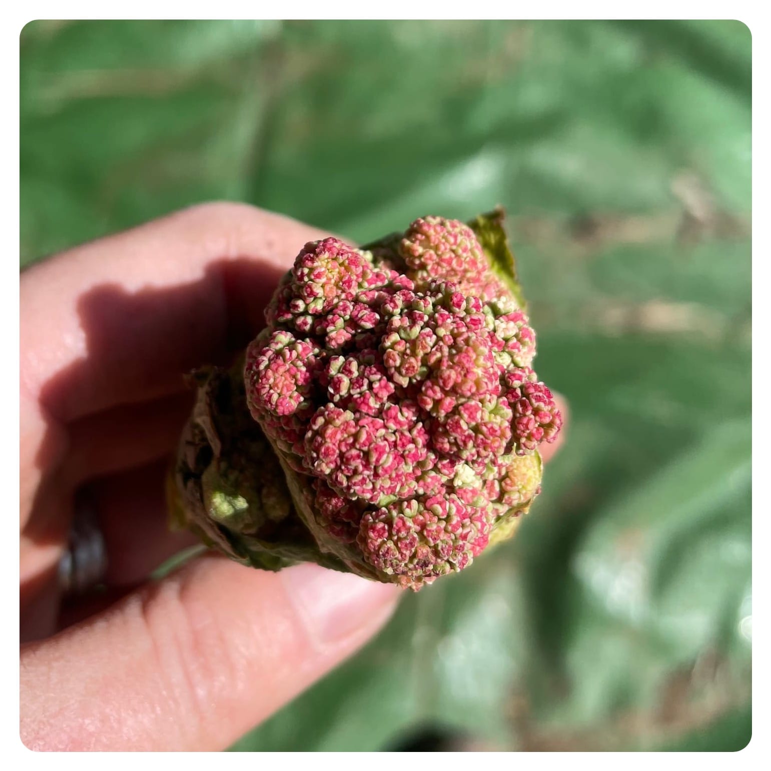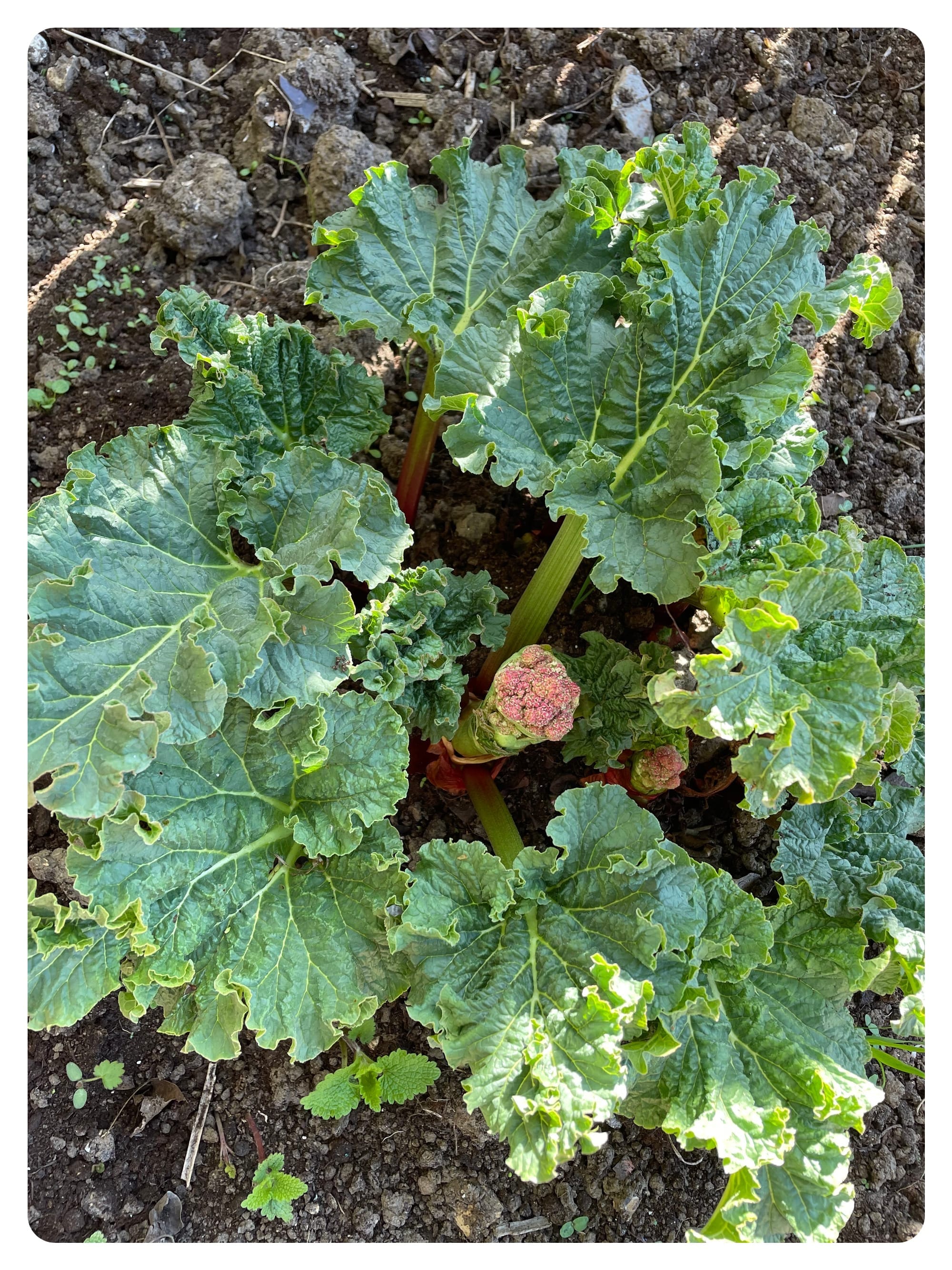Yesterday at the plot I found my poor stressed rhubarb has created three flower buds. I have pulled them off the plant. My plot neighbour was surprised that it had done it so early.