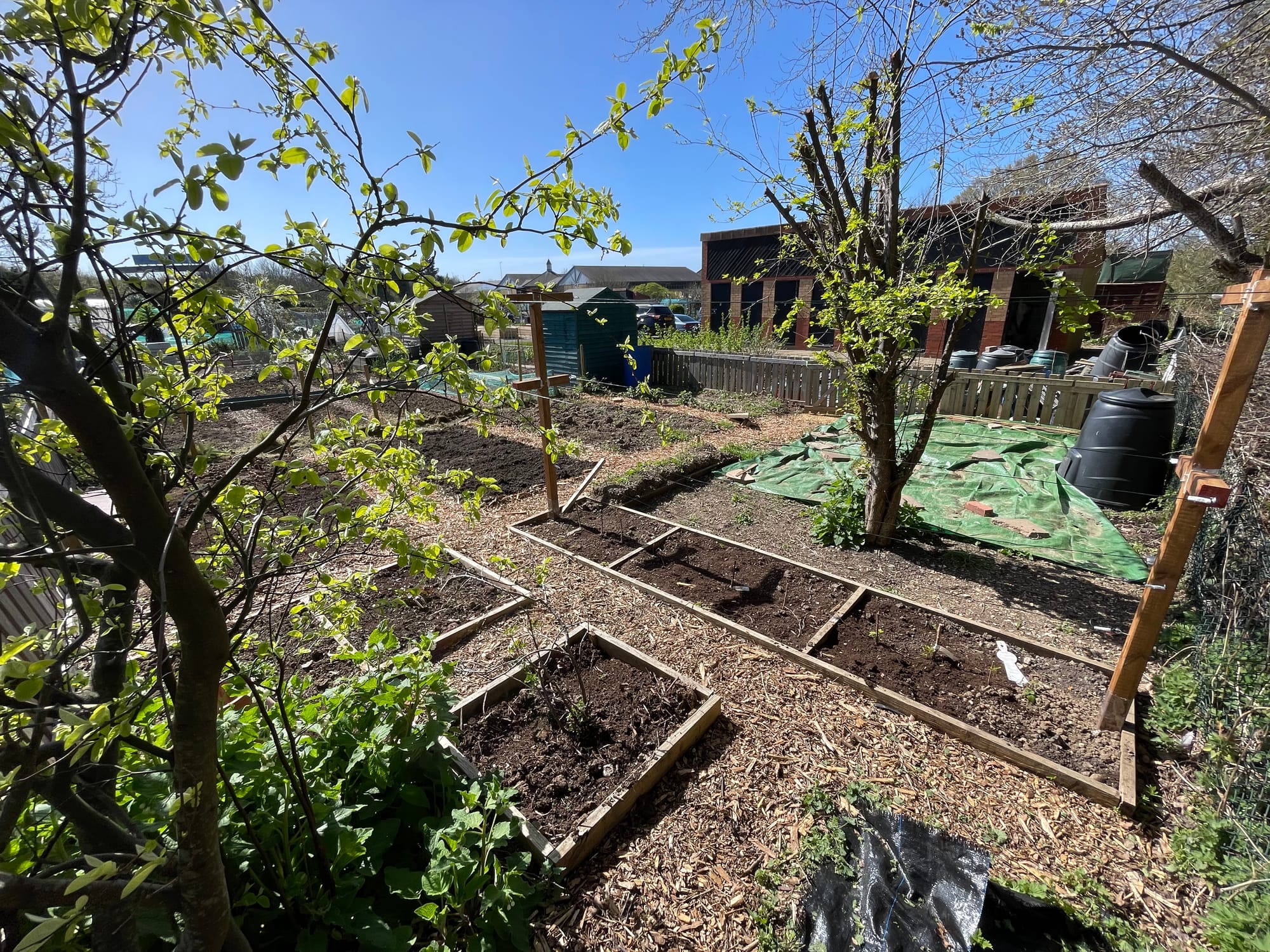 I trimmed all the edges of the plot and cleared up the scrubby rubbish pile. I put a good mix of dry stick type stuff into the composter on my plot before adding two bags of green stuff. I pulled, dug and trimmed nettles. I think that is going to be a constant battle. I used a rake to loosen weeds in beds with space and a hand weeded between my rows of onions and carrots. I have a small patch that is actually growing stuff which is so nice. My sticks (raspberry canes) are also showing signs of life particularly the autumn fruiting sticks. The summer ones are slower, but I think that makes sense. Autumn Raspberries grow on this years growth, the summer ones will grow canes this year that will fruit next year, I think... maybe.